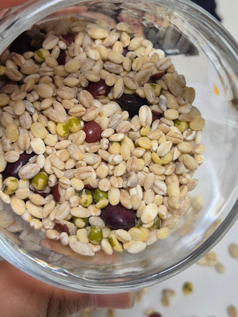 찰보리 60%, 서리태 10%, 기피녹두 10%, 렌틸콩 10%, 적두 10%